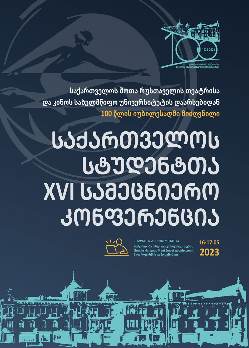 საქართველოს სტუდენტთა XVI სამეცნიერო კონფერენცია ჩატრდა 2023 წლის 16-17 მაისს და მიეძღვნა თეატრისა და კინოს უნივერსიტეტის იუბილეს. მას წელს 100 წელი უსრულდება. ამ თარიღის აღსანიშნავად, კონფერენციებისთვის საგანგებოდ შეიქმნა ემბლემა (დიზაინი - ივ. კიკნაძე), რომელიც ყველა საკონფერენციო პროდუქციაზე გამოისახა.