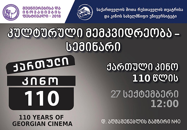 2018 წლის 27 სექტემბერს გაიმართება სამეცნიერო სემინარი ქართული კინომემკვიდრეობა - 110 წლის ქართული კინო“. სემინარი იმარტება მეცნიერებისა და ნიოვაციების ფესტივალის ფარგლებში.