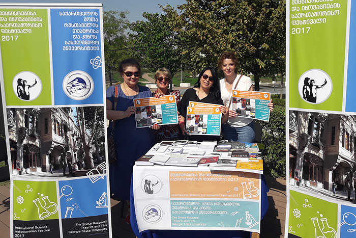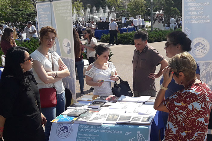 მეცნიერებისა და ინოვაციების საერთაშოისო ფესტივალი 2017-ის ფარგლებში თეატრისა და კინოს უნივერსიტეტი რამდენიმე ღონისძიებით წარდგა (პროექტის ხელმძღვანელი ნატო გენგიური). პირველი ღონისძიება გახლდათ წიგნების გამოფენა, რომელიც რიყის პარკში 24 სექტემბერს გაიმართა. ეს იყო ფესტივლის გახსნა, რომელიც რიყის პარკში მოეწყო და რომელზეც ყველა მონაწილე უნივერსიტეტი თავისი სტენდით იყო წარმოგენილი. მათ შორის იყო საქათველოს შოთა რუსთაველის თეატრისა და კინოს სახელმწიფო უნივერსიტეტი. გახსნაზე სიტყვით გამოვიდნენ საქართველოს განათლებისა და მეცნიერების მინისტრი ალექსანრე ჯეჯელავა, თბილისის მერი დავით ნარმანია და სხვები. ჩვენი უნივერსტეტის წიგნების გამოფენამ განსაკუთრებული დაინტერესება ახალგაზრდა თაობაში გამოიწვია, რაც არ არის გასაკვირი, რადგან დამსწრეთა შორის ბევრნი იყვნენ სკოლების უფროსი კლასების მოსწავლეები.